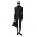 What sets this blazer apart is its longer length, which extends past the hip for a sophisticated and flattering silhouette. This elongated design not only adds a sense of drama and flair but also provides additional coverage and warmth, making it ideal for transitional weather or cooler evenings. The longer length also creates a sleek and elongated silhouette, further enhancing the figure-flattering fit of the blazer.