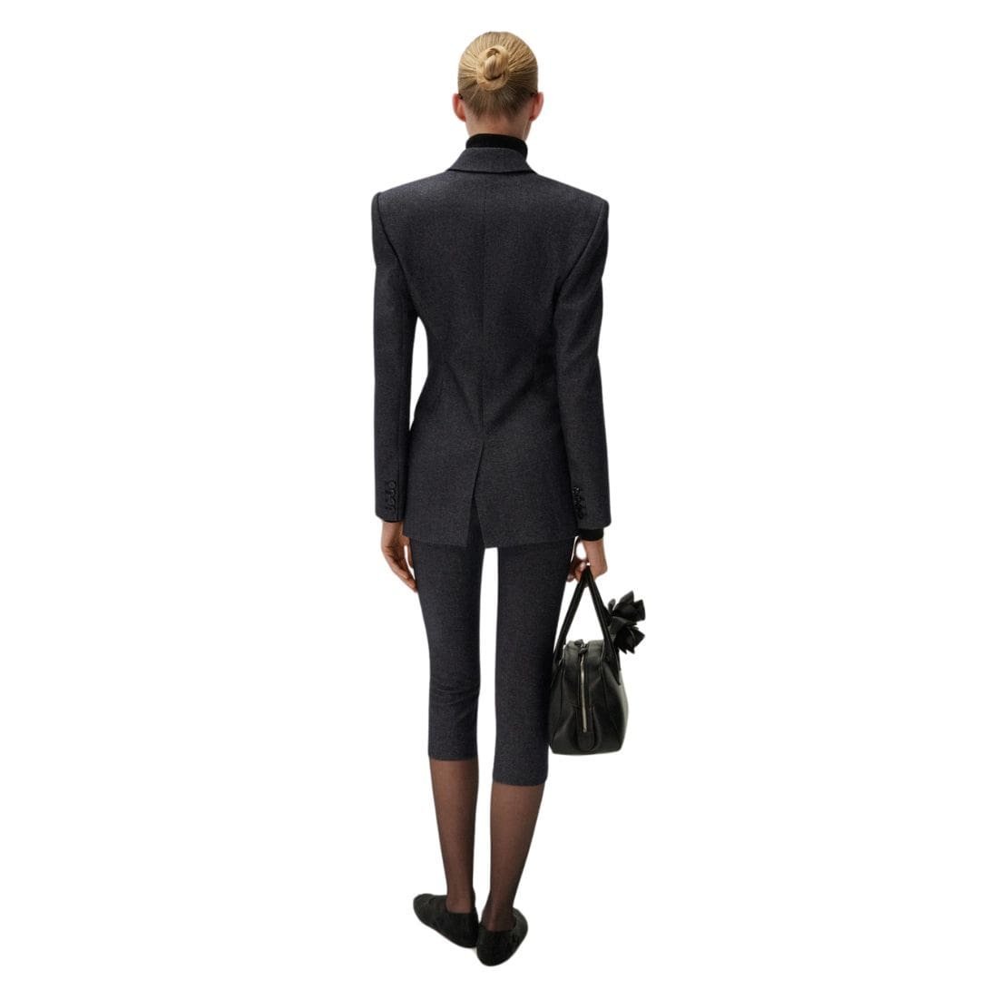 At the forefront of its design are the sharp shoulders, which add structure and definition to the silhouette, enhancing your posture and exuding confidence. The single-button closure not only adds a touch of understated elegance but also allows for effortless fastening, ensuring a sleek and polished look every time you wear it. This minimalist detail contributes to the overall clean and streamlined aesthetic of the blazer, making it a versatile staple in your wardrobe.