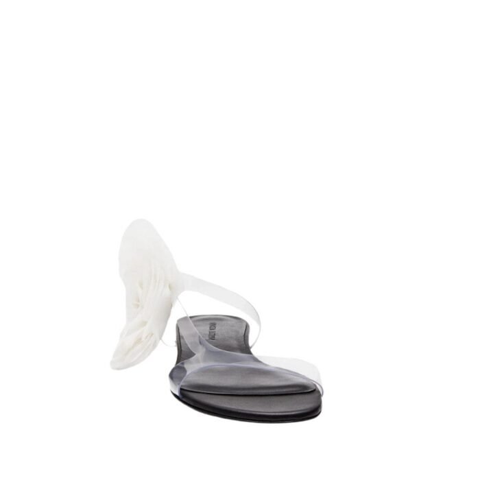 In summary, our flat sandals with clear PVC straps and tulle rose embellishments epitomize modern sophistication and timeless style. From their premium materials to their thoughtful detailing, every aspect of these sandals reflects our dedication to creating footwear that transcends trends and exudes effortless elegance. Step into sophistication with these sandals and elevate your look with understated charm and allure.