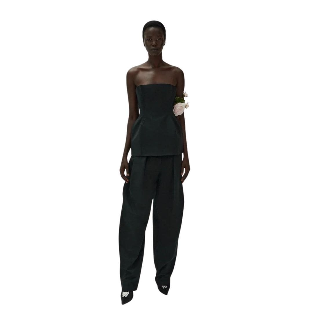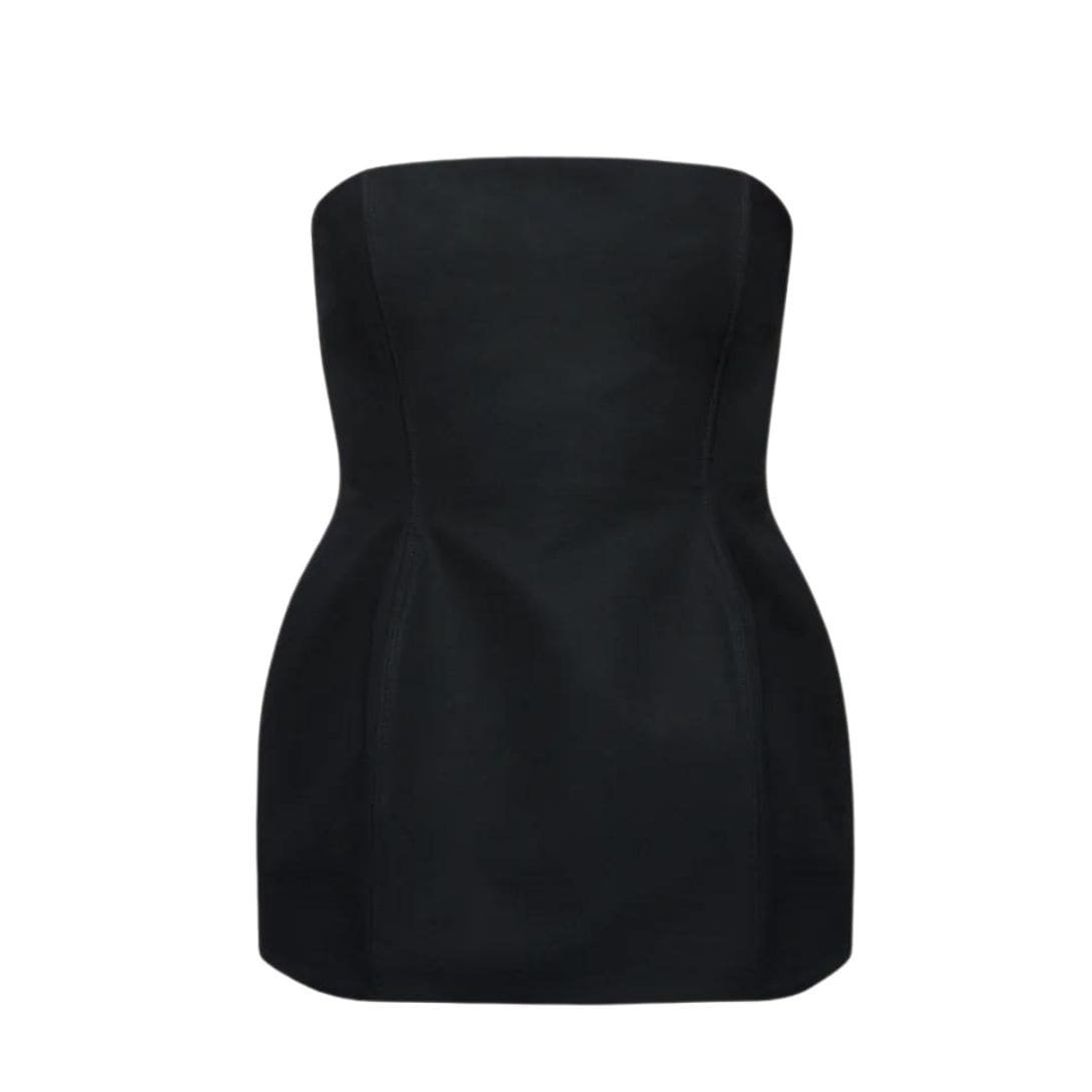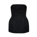 Magda Butrym’s strapless hourglass corset in black is a testament to her ability to create pieces that combine timeless elegance with contemporary flair, catering to the confident and fashion-conscious individual.
