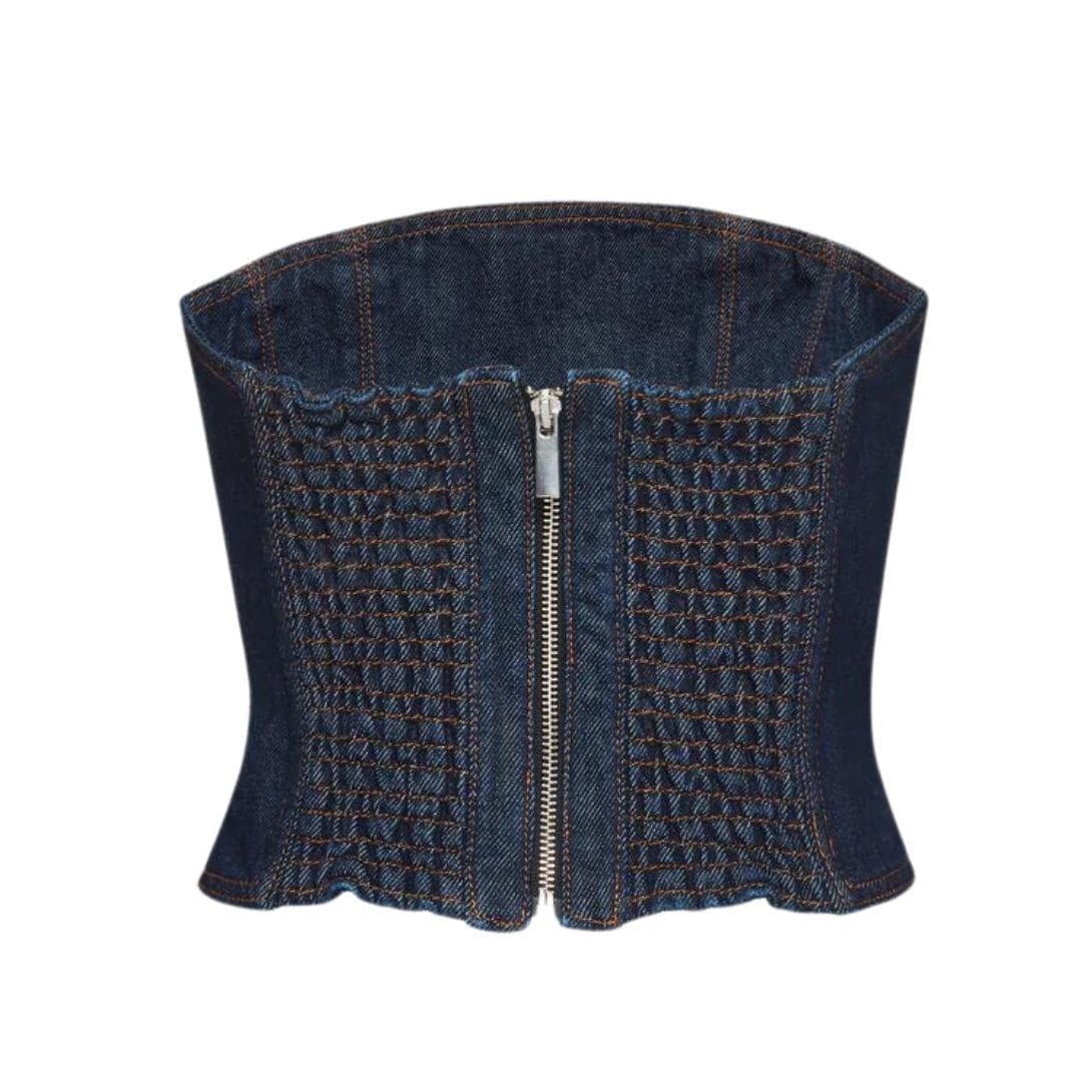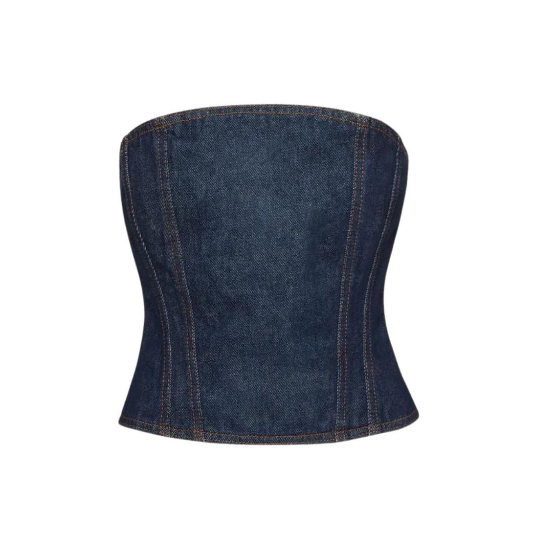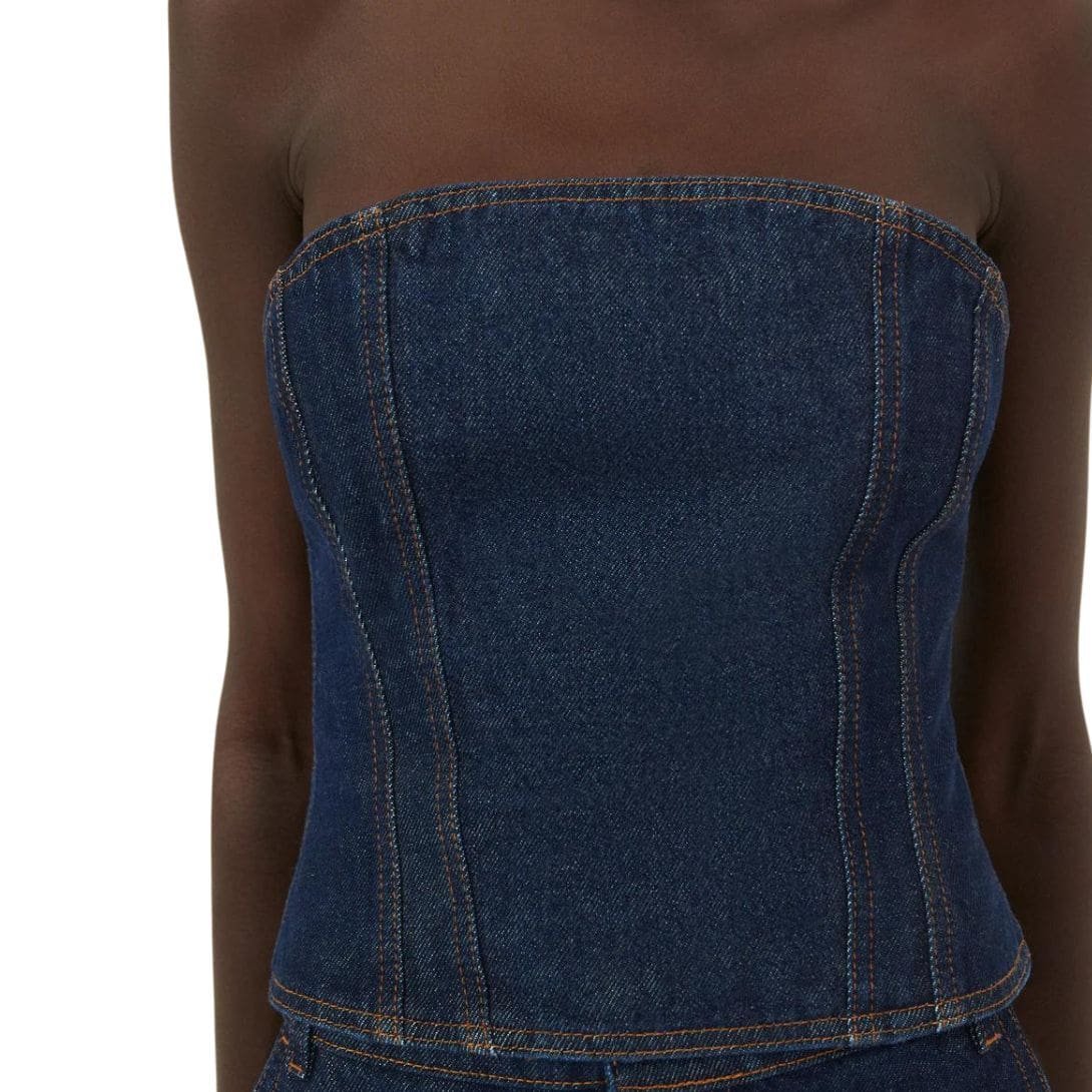 Perfect for those seeking a blend of sophistication and modern edge, Magda Butrym’s strapless denim corset in blue is a versatile piece that transitions effortlessly from day to evening wear. Pair it with tailored trousers or a flowing skirt for a polished look, or style it casually with jeans for a relaxed yet fashion-forward ensemble.
