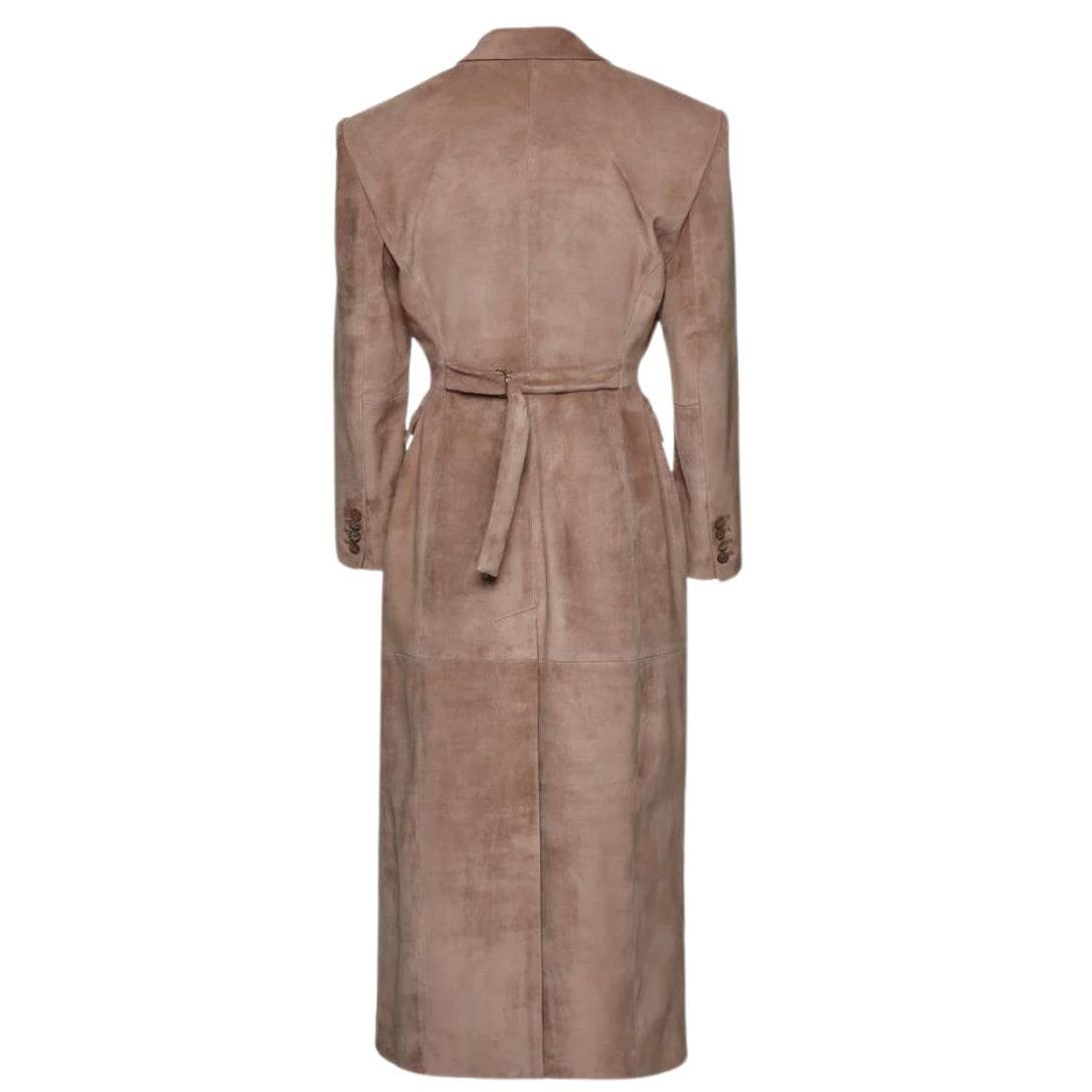 Crafted from luxurious suede, this coat is as sumptuous to the touch as it is stunning to behold. The rich, brown hue adds a warm and earthy tone that is versatile and easy to style, making it a perfect addition to any wardrobe. The suede material not only provides a luxurious feel but also ensures durability and longevity, promising a piece that you can cherish for years to come.
