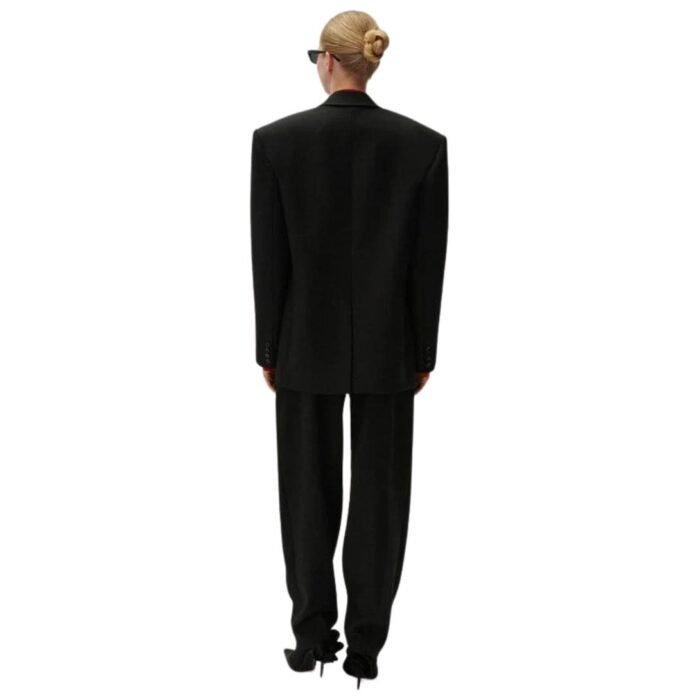 In conclusion, Magda Butrym’s tapered wool pants in black are a perfect blend of classic tailoring and contemporary design. The loose fit at the hips and tapered leg creates a flattering silhouette, while the extra slouchy cut adds a modern twist. Crafted from high-quality wool, these pants are both stylish and practical, making them an essential piece for any fashion-forward wardrobe. Whether dressed up or down, these pants offer timeless elegance and modern versatility.