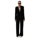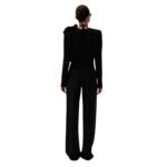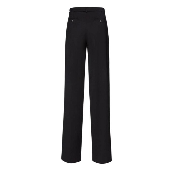 Both front and back pleating contribute to the trousers’ tailored aesthetic, adding depth and dimension to the silhouette. The pleats not only lend a sense of sophistication to the trousers but also ensure a flattering fit that drapes gracefully over the body. This meticulous attention to detail exemplifies the brand’s commitment to quality craftsmanship, ensuring that each pair of trousers is impeccably tailored to perfection.