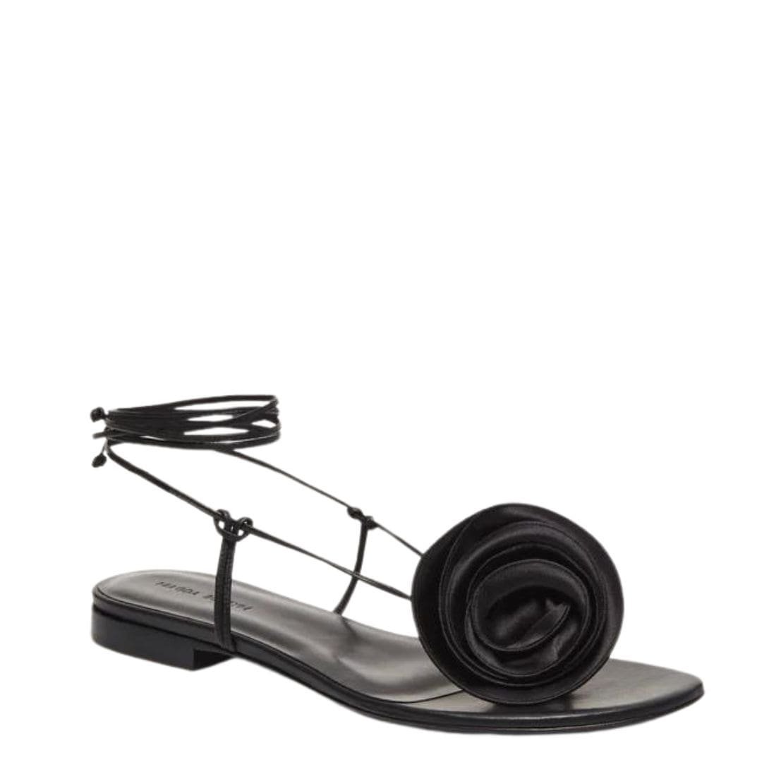 Be the first to review “MAGDA BUTRYM WRAP AROUND FLAT FLOWER SANDALS IN BLACK SATIN” Cancel reply