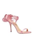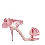 In summary, Magda Butrym’s Wrap Around Flower Sandals in Pink are a stunning example of modern elegance. With a 105mm heel, luxurious pink satin, intricate strappy design, and exquisite 3D flower embellishments, these sandals are the perfect choice for those looking to make a bold and stylish statement. Made in Italy, they combine high-quality craftsmanship with innovative design, making them a must-have for any fashion-forward wardrobe.
