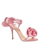 Magda Butrym Wrap Around Flower Sandals in Pink. are a sophisticated and artful addition to any high-fashion footwear collection. These sandals are a testament to Magda Butrym’s dedication to combining classic elegance with contemporary design elements, creating a striking and memorable shoe.
