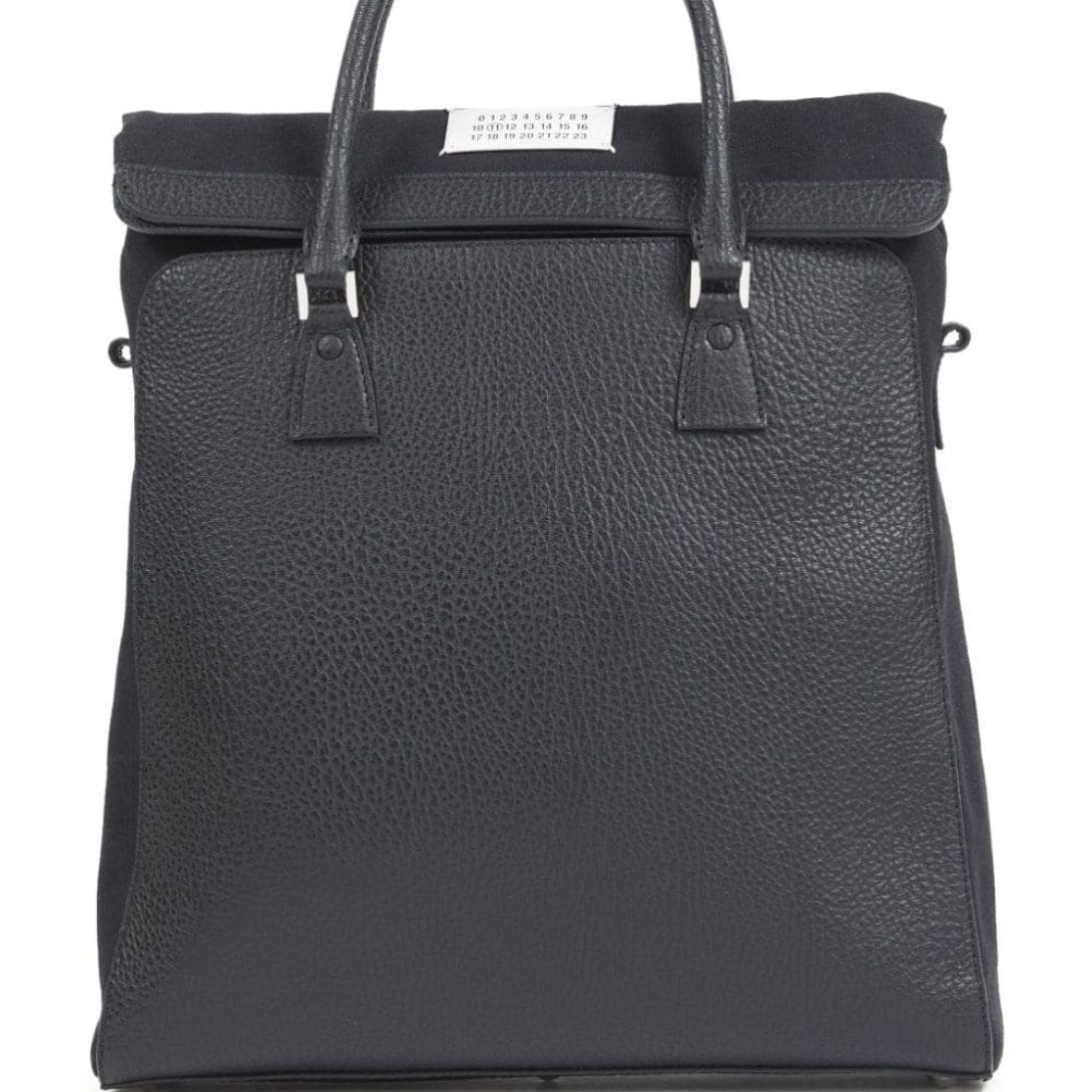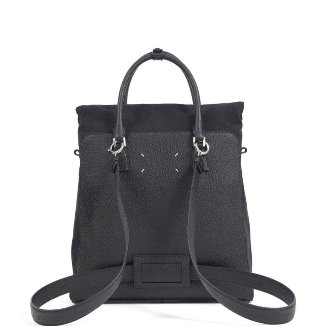 Maison Margiela 5AC Leather Backpack Originally introduced as John Galliano’s inaugural bag creation for Maison Margiela, the 5AC tote bag embodies versatility through its innovative design. Crafted from premium black calf leather, this structured top-handle silhouette showcases the brand’s avant-garde approach as it transforms with extended lining to the top.