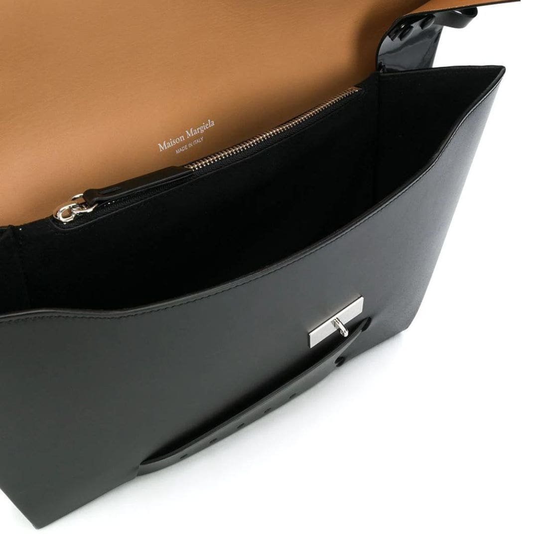 Brand Detail: Adorned with a metal logo plaque, reflecting Maison Margiela’s signature style.