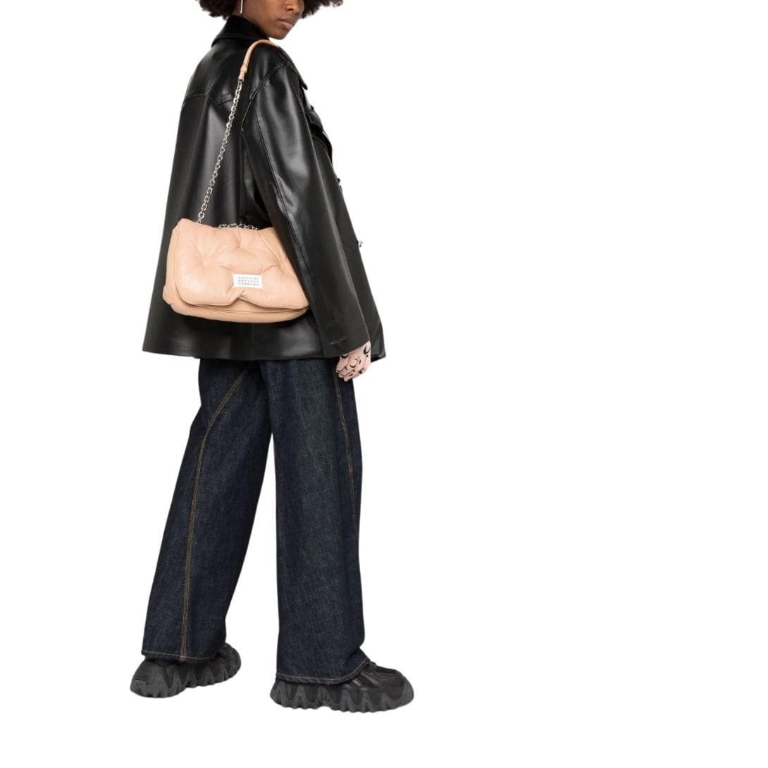 Elevate your look with the Maison Margiela Medium Glam Slam Flap Shoulder Bag, a timeless accessory that epitomizes effortless elegance and sophistication.