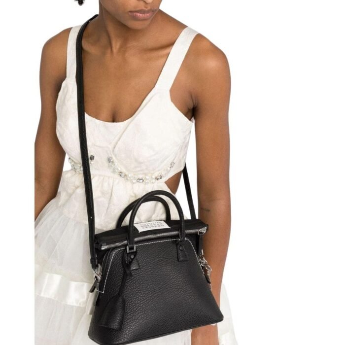 Introducing Maison Margiela mini 5AC Classique top-handle bag, a testament to the brand’s innovative and deconstructed design philosophy. Crafted in Italy, this versatile accessory showcases Maison Margiela’s distinctive aesthetic with its sleek silhouette and thoughtful details.