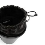 Experience sophistication and practicality seamlessly intertwined in the Maison Margiela Mini Fire Leather Bucket Bag. Crafted in Italy, this bag boasts a sleek black exterior adorned with the brand’s signature logo print, adding a touch of distinction to your ensemble. The drawstring fastening ensures security while providing easy access to your essentials. Carry it effortlessly with the single circular top handle, designed for both style and comfort.