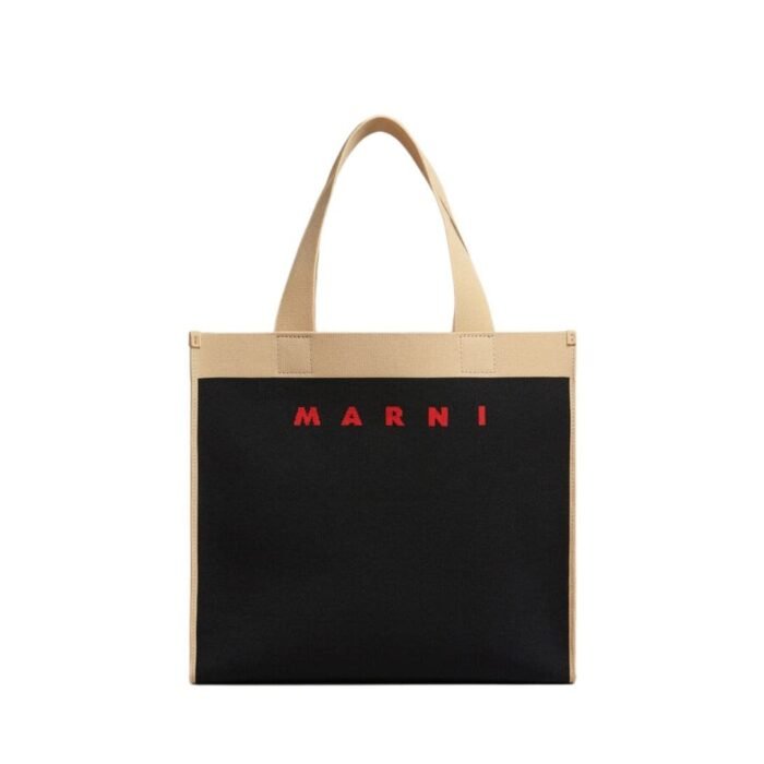 Inside, the Marni shopping bag is equally functional, with a spacious interior that includes multiple compartments to keep your essentials organized. The bag’s design is completed with a minimalist Marni logo subtly embossed on the exterior, adding a touch of understated branding.