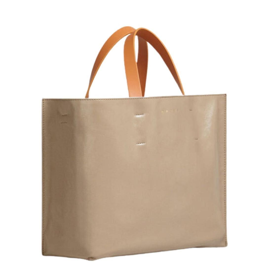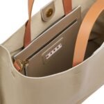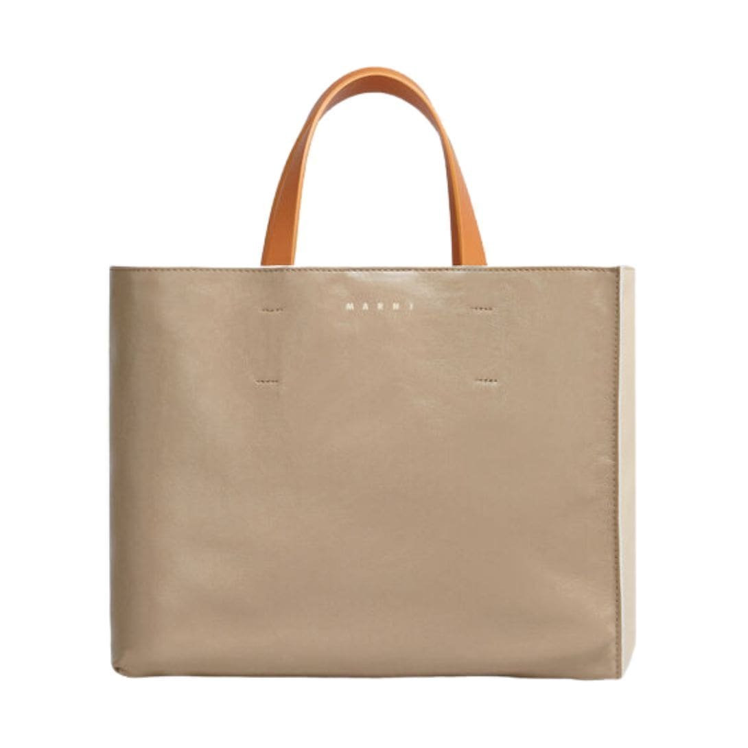 The Museo Soft Bag EW in grey, green, and beige leather stands out for its thoughtful design features. Marni has included sturdy handles and a detachable shoulder strap, providing versatility in how you carry it. Whether you prefer to hand-carry it for a more polished look or sling it over your shoulder for hands-free convenience, this bag adapts effortlessly to your needs. The interior compartments are well-organized, allowing you to keep your belongings in order and easily accessible.