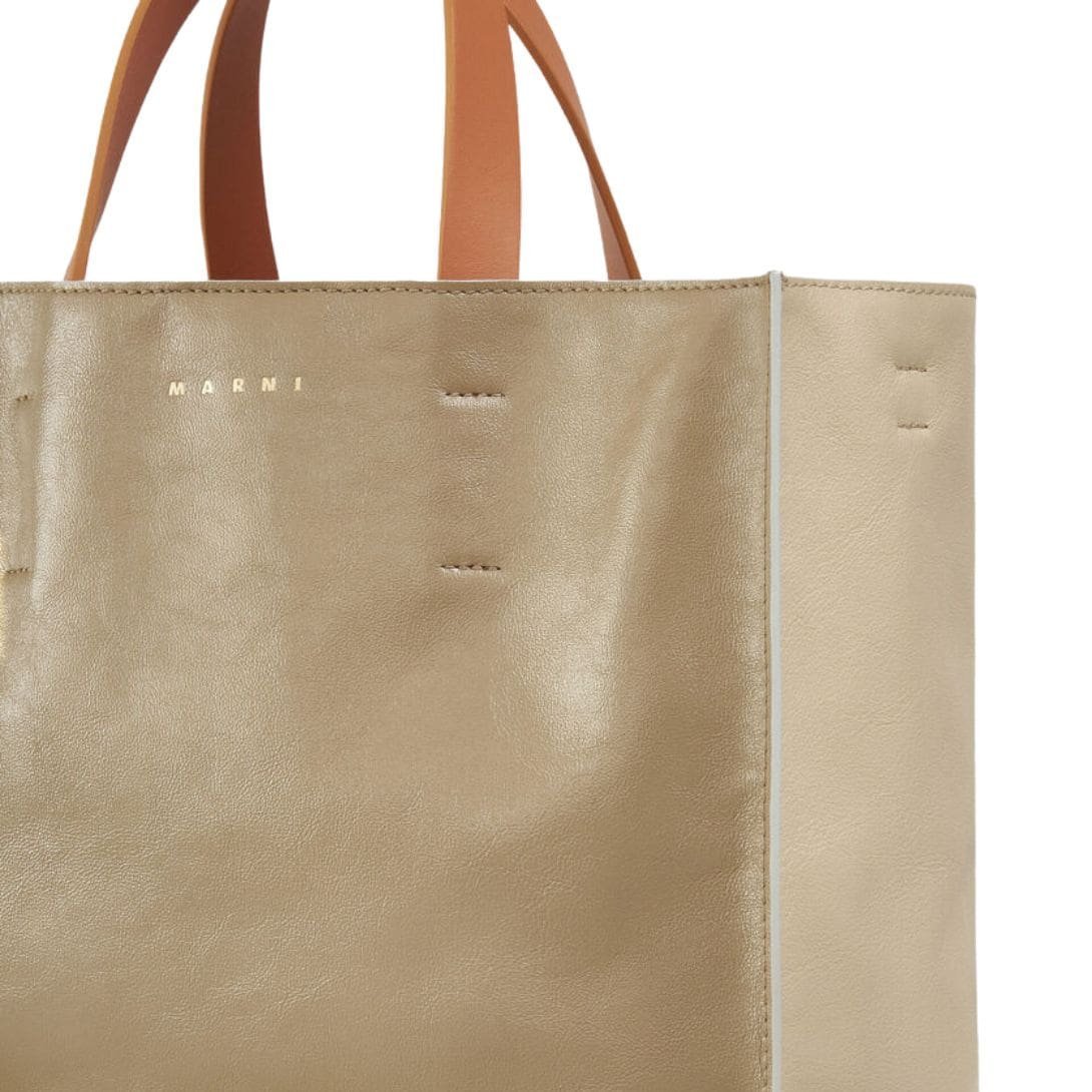 MARNI MUSEO SOFT BAG EW IN GREY GREEN AND BEIGE LEATHER