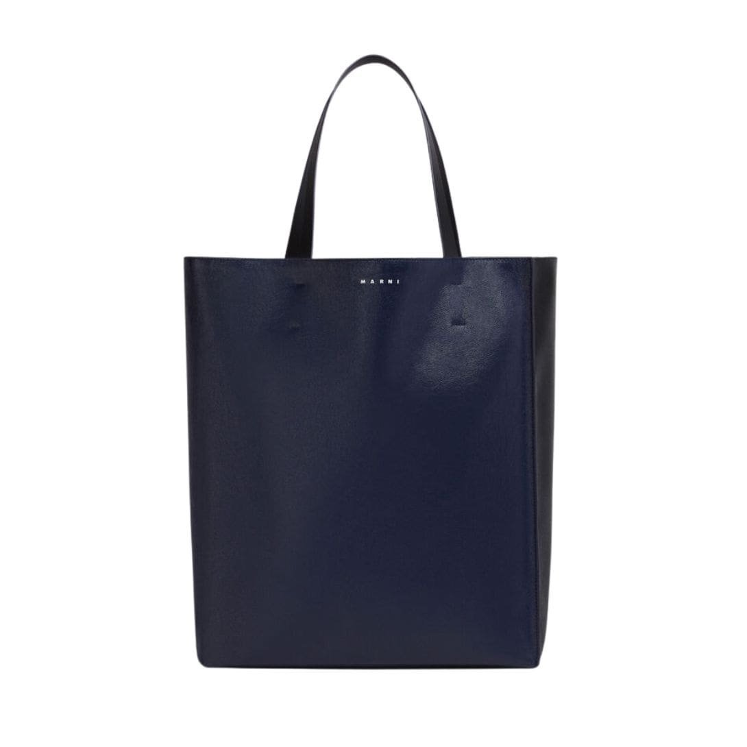 The Marni Museo Soft Large Bag also features gold-tone hardware that enhances its overall elegance. The combination of the refined leather and the striking blue details results in a chic, contemporary look that is perfect for both casual and formal settings. With its understated luxury and practical design, this bag is a timeless addition to any fashion-forward wardrobe.
