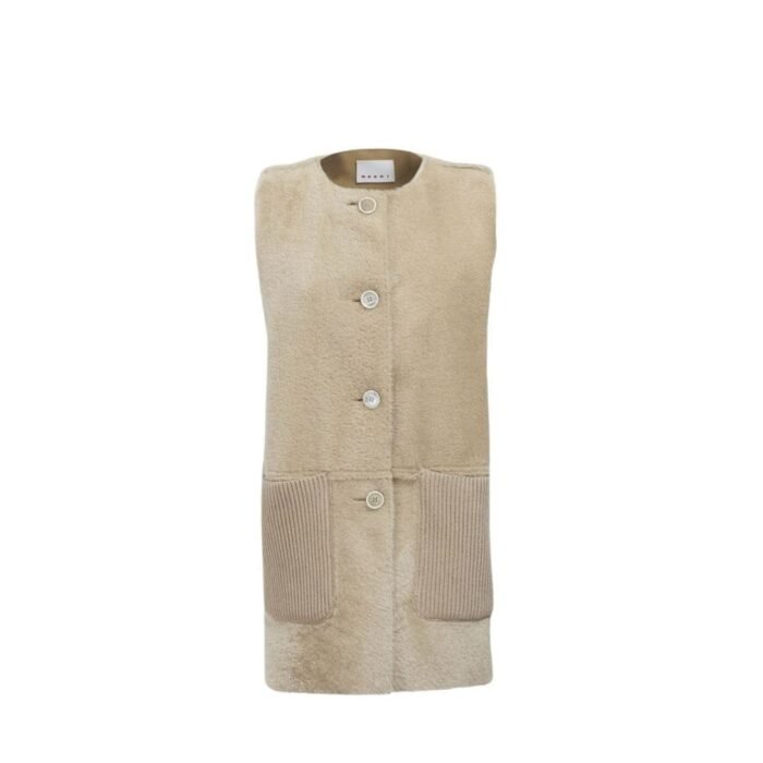 The Marni Reversible Light Merino Velour Vest is designed with a minimalistic approach, emphasizing clean lines and a streamlined silhouette. It features a simple yet functional front closure, often with a discreet zip or snap fastener, ensuring ease of wear while maintaining a sleek profile. The vest is cut to provide a flattering fit, with just the right amount of room for layering over shirts, sweaters, or blouses. MARNI REVERSIBLE LIGHT MERINO VELOUR VEST