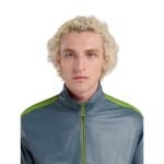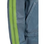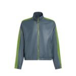 The jacket’s design is elevated by striking contrast stripes that run down the sleeves and across the ribbed hem and cuffs. These stripes, in a complementary color, not only add a dynamic visual element but also highlight the jacket’s contemporary edge. The bomber’s relaxed fit is complemented by a ribbed collar and a zip-up front, allowing for adjustable styling and ease of wear.