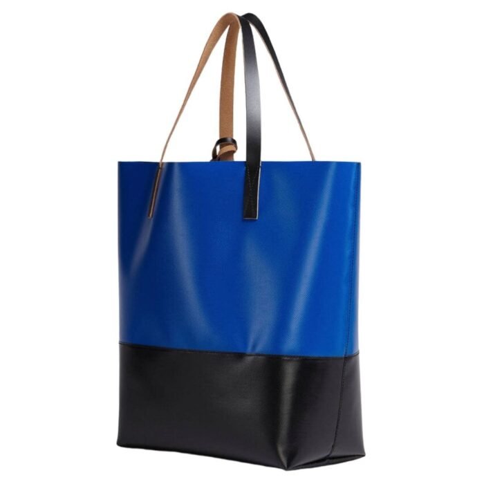 The bag’s minimalist design is complemented by subtle Marni branding, which is tastefully embossed on the leather. This understated logo adds a touch of luxury without overwhelming the bag’s sleek appearance. Whether you’re heading to the office, a shopping spree, or a weekend getaway, the Marni Tribeca Shopping Bag in Blue and Black offers a blend of style and functionality, making it a sophisticated addition to any wardrobe.