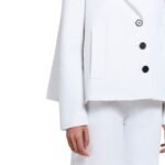 The Marni White A-Line Cady Jacket with Back Pleat is a sophisticated piece that effortlessly combines elegance and modernity. Crafted from high-quality cady fabric, this jacket features a pristine white color that exudes freshness and versatility, making it an ideal choice for various occasions. The cady material is known for its smooth texture and structured silhouette, offering a refined drape that enhances the jacket’s tailored look. MARNI WHITE A LINE CADY JACKET WITH BACK PLEAT