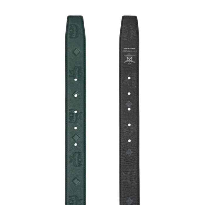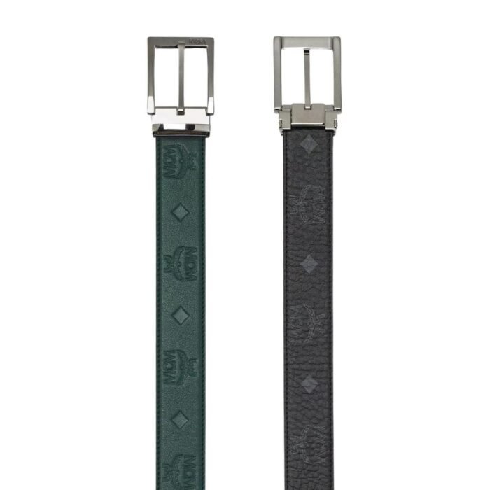 The MCM Aren Reversible Belt 1.3″ In Embossed Monogram Leather Green epitomizes the essence of timeless sophistication and versatility, poised to elevate any ensemble with its impeccable craftsmanship and attention to detail. Crafted with precision and finesse, this accessory transcends mere functionality, emerging as a symbol of refined taste and discerning style.