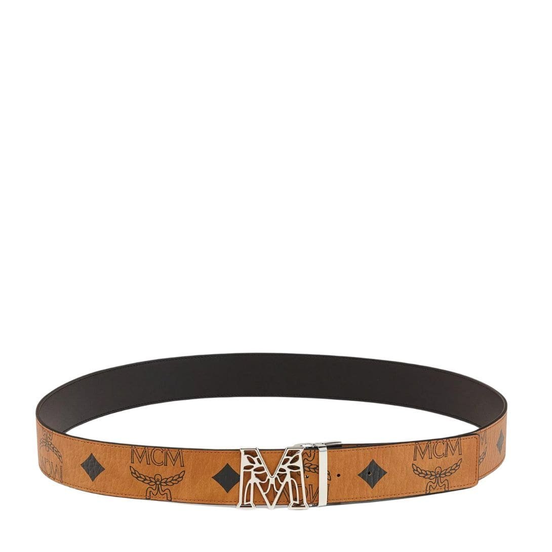 MCM CLAUS LAUREL M REVERSIBLE BELT 1.75” IN MAXI VISETOS COGNAC/SILVER