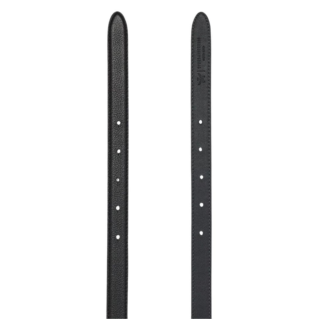 Turning the belt over reveals another layer of thoughtful design—the smooth Nappa leather backing, sculpted for comfort and durability. This detail ensures that every aspect of the belt, from its exterior to its interior, is imbued with a sense of luxury and refinement.