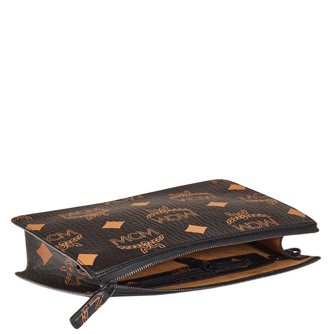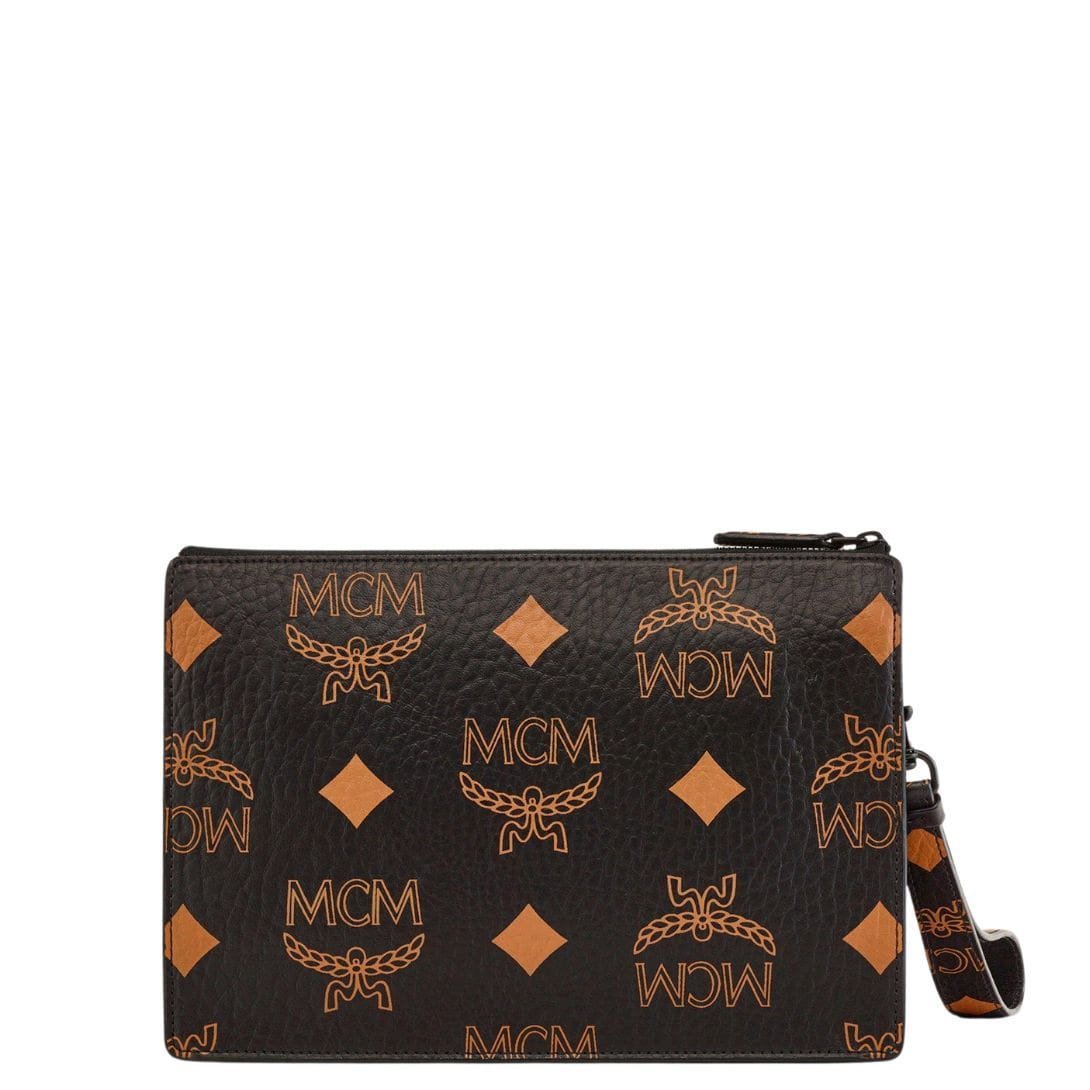 Embrace the essence of MCM Small Wristlet Zip Pouch W/ Chain Strap In Maxi Visetos Black. iconic maximalism with the striking design of the MCM Large Standing Pouch. This statement piece features a captivating blend of classic motifs, including the brand’s signature letters, laurels, and diamonds, presented boldly and amplified. Crafted from high-quality Visetos monogram canvas and trimmed with luxurious Nappa leather, this standing pouch exudes sophistication and style.