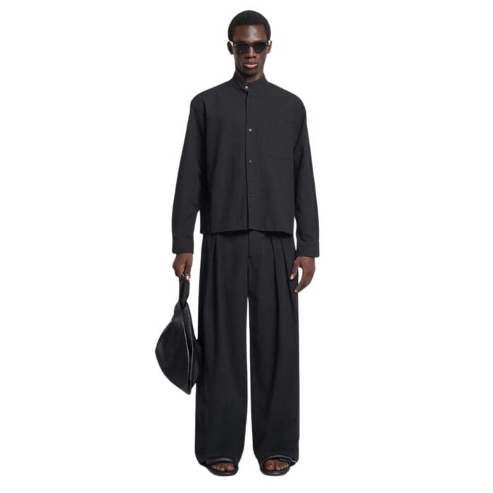 The sparse detailing of the Abbas shirt enhances its understated elegance, with button fastenings serving as subtle yet functional accents. These button fastenings add a touch of refinement to the shirt’s utilitarian appeal, allowing for easy wear and removal while maintaining a polished finish.