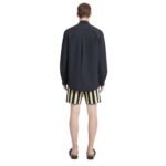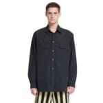 The use of tech poplin fabric ensures not only durability but also a refined finish that sets this shirt apart. Its crisp texture enhances the structured silhouette, creating a polished look that transitions seamlessly from day to night. The black tone adds a touch of versatility, allowing for effortless coordination with a variety of wardrobe staples.