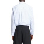 At the heart of its design lies a classic collar, adding a touch of timeless sophistication to the shirt’s silhouette while enhancing its versatility. This traditional collar detail pays homage to menswear staples, infusing the garment with a sense of understated refinement.
