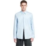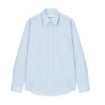 The sky-blue cotton fabric lends the Kaleb shirt a lightly structured yet airy feel, making it an ideal choice for various occasions and seasons. Its translucent finish adds a contemporary edge to the classic silhouette, creating a subtle contrast that elevates the shirt’s versatility and appeal.