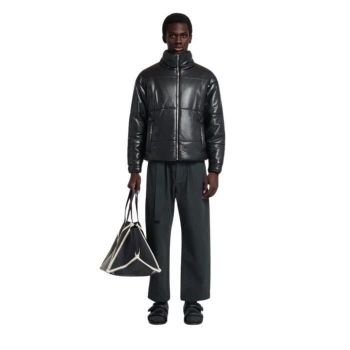 Nanushka Marron Okobor Alt-Leather Puffer Jacket Black. by Nanushka stands as a pinnacle of sustainable fashion and timeless elegance. Crafted from the brand’s signature OKOBORâ„¢ alt-leather in a classic black hue, this jacket exemplifies Nanushka’s commitment to both style and sustainability.