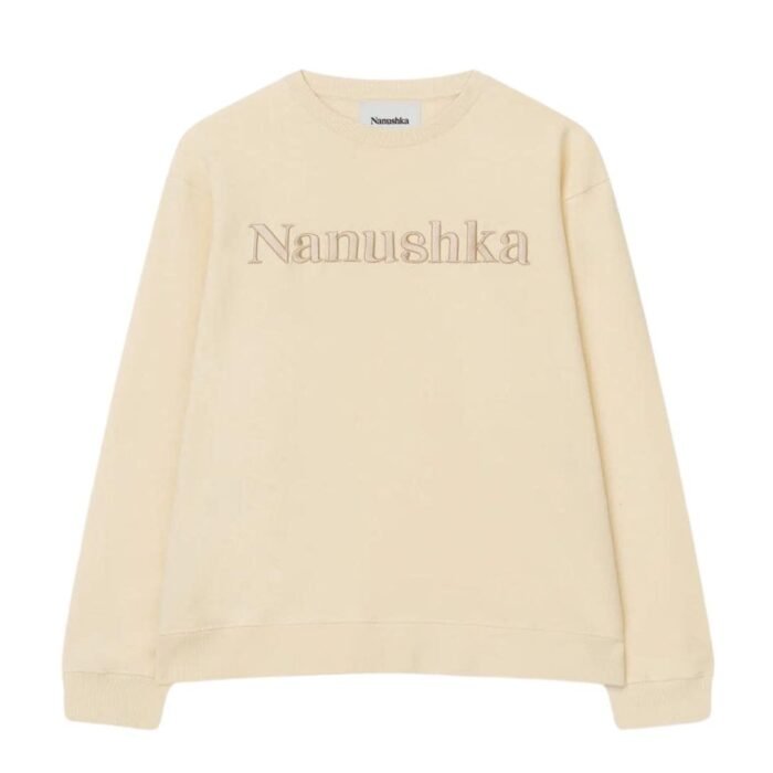 Discover the epitome of timeless elegance with the NANUSHKA REMY ORGANICALLY GROWN COTTON SWEATSHIRT CREME from Nanushka’s Symbol collection. This classic piece, reimagined for the modern wardrobe, seamlessly combines comfort, style, and sustainability.