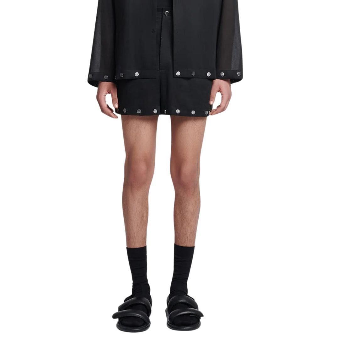 Indulge in contemporary elegance with NANUSHKA TALLON STUDDED ORGANZA BERMUDA SHORTS BLACK, meticulously crafted from luxurious organza fabric to exude sophistication with a modern twist. These Bermuda shorts boast a baggy fit distinguished by silver studs, adding an edgy flair to their refined silhouette.