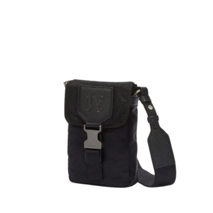 Gold-tone hardware accents, including the zip pull and logo plaque, elevate the design with a touch of sophistication. These details not only enhance the bag’s visual appeal but also add a hint of opulence. The Palm Angels Monogram Crossbody is perfect for fashion-forward individuals who appreciate both style and practicality. Whether you’re heading out for a casual day or a night out, this bag complements a variety of outfits, from streetwear to more polished ensembles.