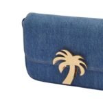 The exterior of the bag is adorned with the Palm Angels logo embossed on a metal plaque, adding a touch of sophistication and brand recognition. The bag’s sleek lines and minimalist aesthetic are complemented by subtle hardware details, including metallic accents that enhance its modern appeal.