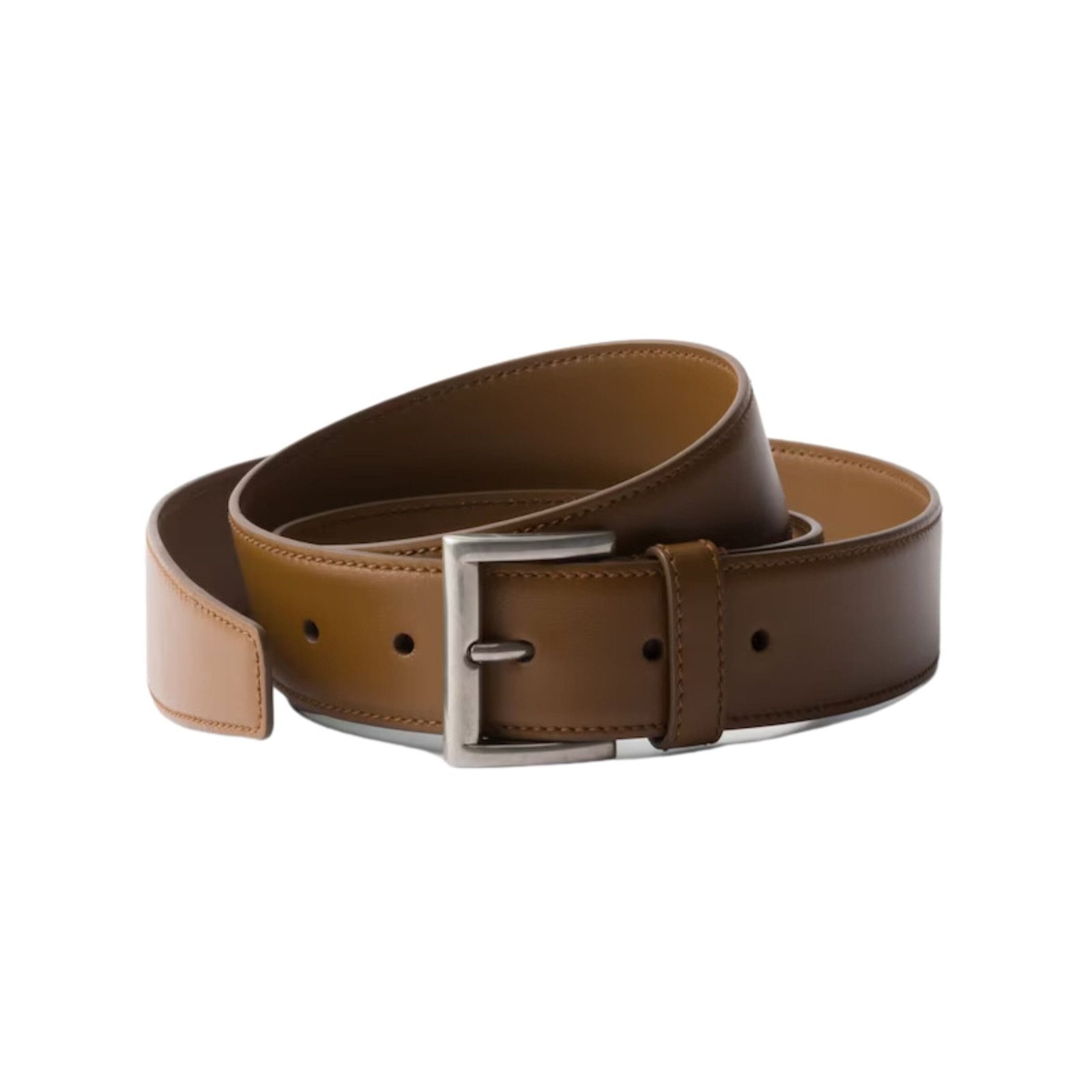 Indulge in the luxury of Prada and elevate your ensemble with this exquisite leather belt. With its impeccable craftsmanship, refined details, and timeless appeal, it is sure to make a statement wherever you go, embodying the essence of elevated style and sophistication.