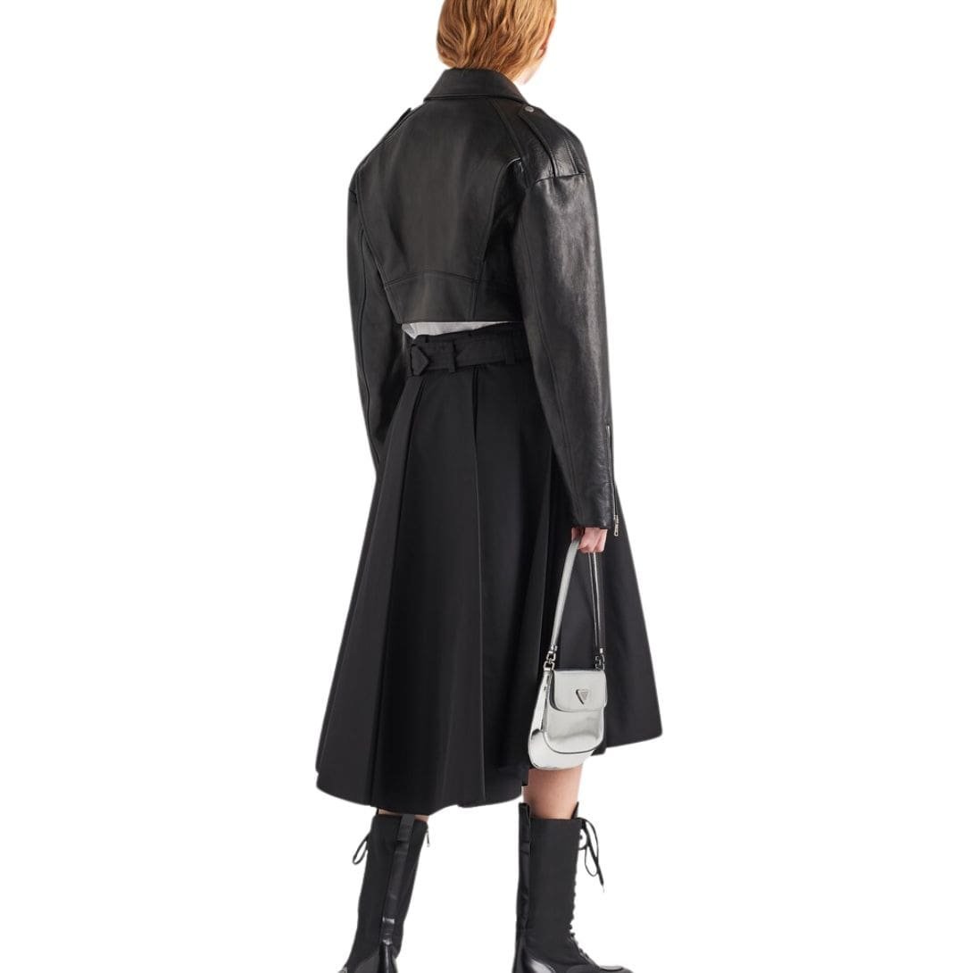 The versatility of the Prada Leather Biker Jacket knows no bounds. Whether paired with distressed denim for a casual daytime look or layered over a tailored dress for a night out, it effortlessly transitions from day to night, adapting to any occasion with effortless sophistication.