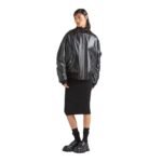 Prada’s meticulous craftsmanship is evident in every detail of the jacket, from the precision stitching to the finely tuned hardware. The sleek, minimalist design is accentuated by subtle branding, with the iconic Prada logo discreetly embossed or engraved, adding a touch of understated luxury.