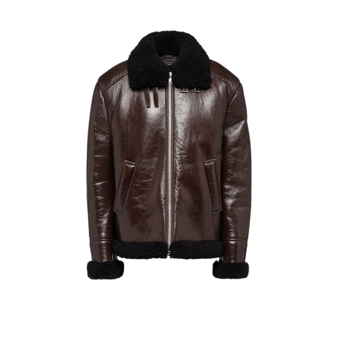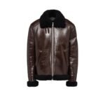 Made from premium shearling, the jacket boasts an opulent texture and remarkable warmth, making it an ideal choice for cold weather. The exterior features a rich Coffee Black hue, a deep and versatile color that complements various outfits while exuding a sense of understated luxury. The plush shearling lining peeks out from the collar and cuffs, providing a striking contrast and adding an element of coziness and sophistication.