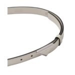 Introducing our exquisitely crafted Prada Saffiano Leather Belt In White belt, distinguished by its sleek and refined aesthetic, culminating in a metal buckle reminiscent of our iconic triangle logo. Crafted from our signature Saffiano leather, renowned for its distinctive crosshatch texture and sumptuous waxed finish, this belt epitomizes luxury and durability.