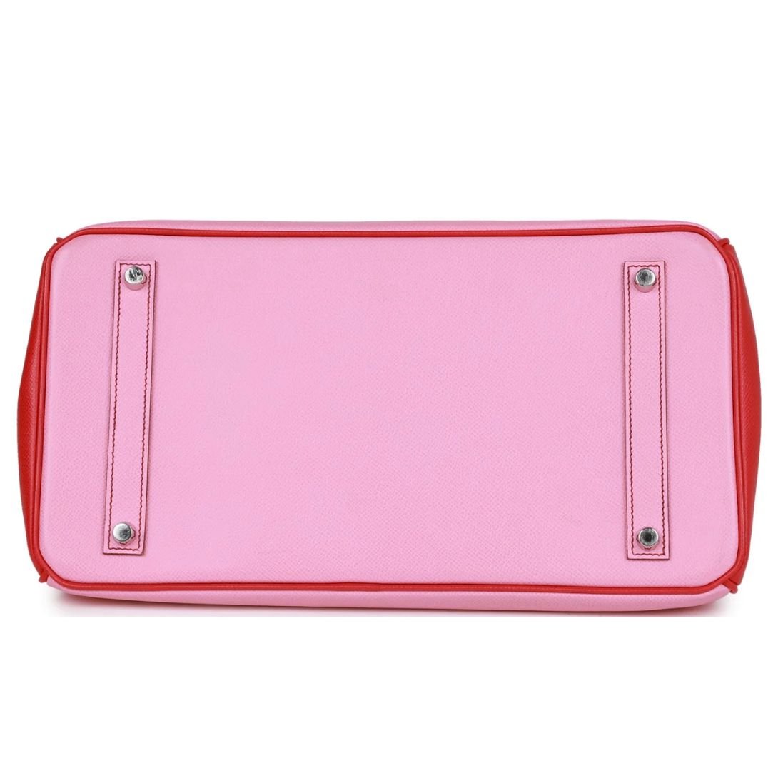 This Special Order Hermès Birkin 35 in Bubblegum and Bougainvillea Epsom leather with palladium hardware is a rare and stylish piece that seamlessly combines playful pink tones with classic sophistication.