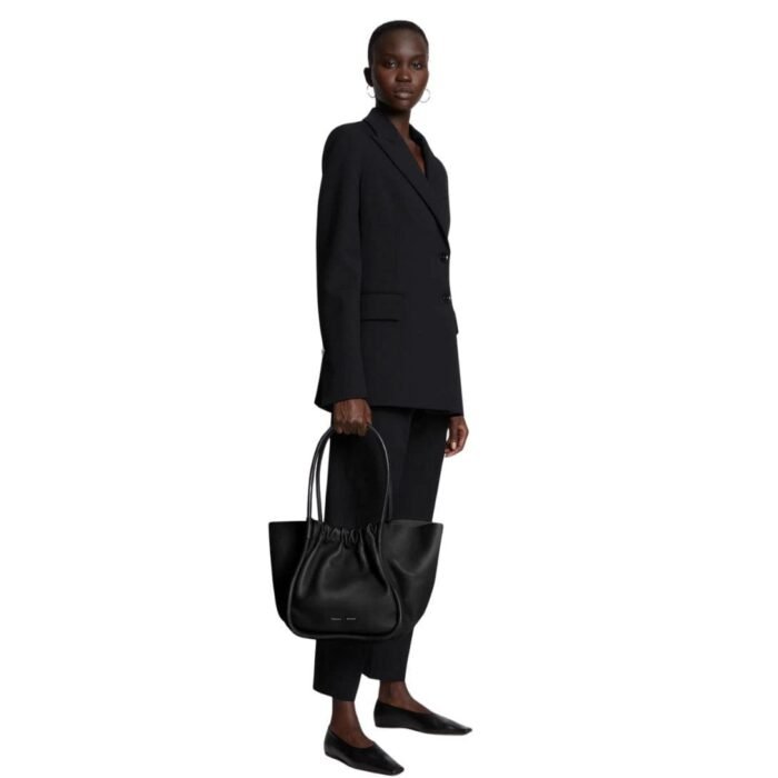 In the expansive Tote family, the Large Ruched Tote stands as a pinnacle of versatility and style, offering ample space and unrivalled elegance for the modern individual. Crafted in a timeless black hue, it serves as a canvas for elevated everyday luxury, effortlessly complementing any ensemble with its understated allure.