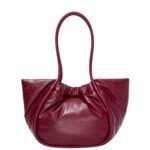 As a distinguished member of the esteemed Tote family, this iteration in garnet red exudes a bold yet timeless allure, making a statement with its rich hue. The two top handles, gracefully curved for ergonomic comfort, add a touch of modernity to the design, ensuring both style and functionality.