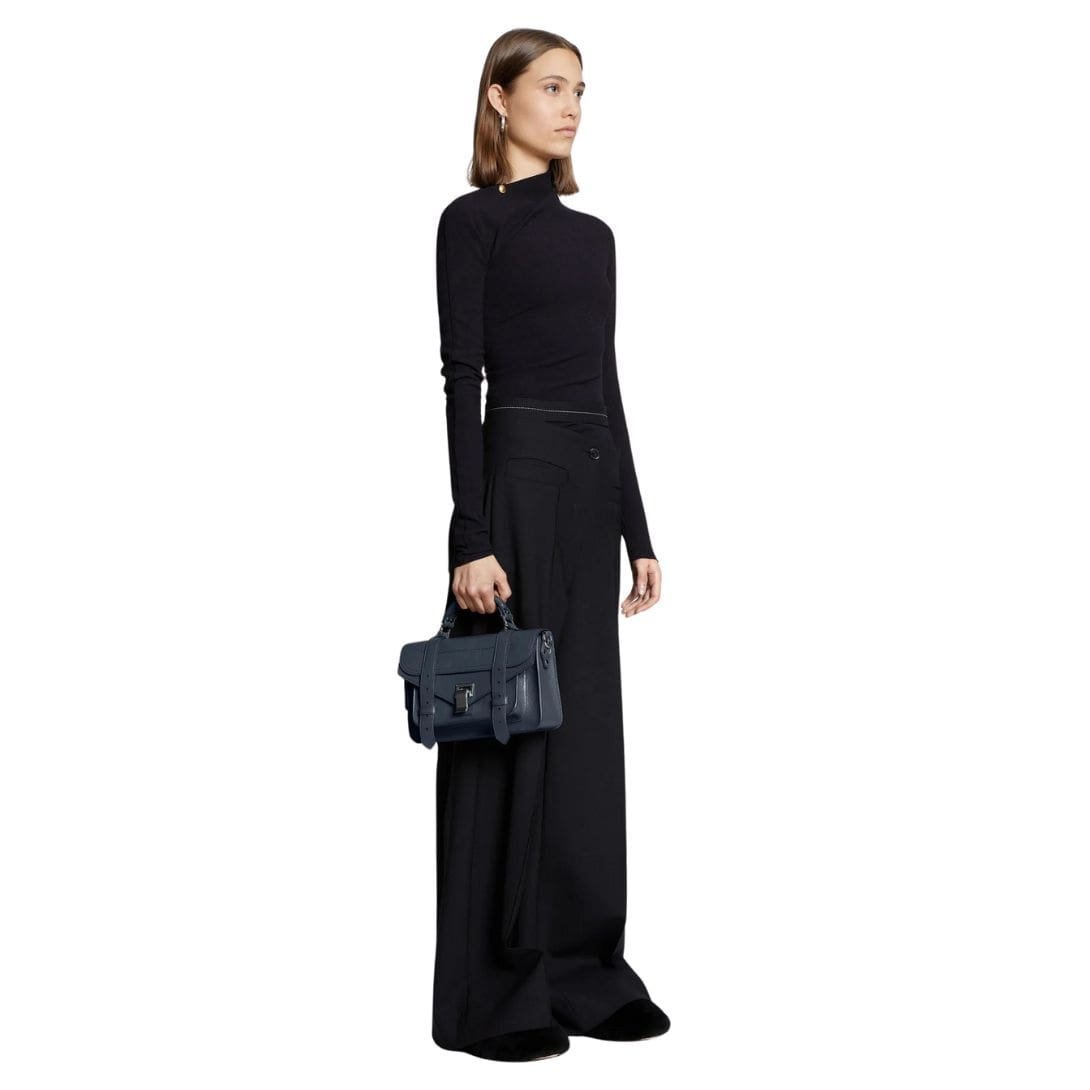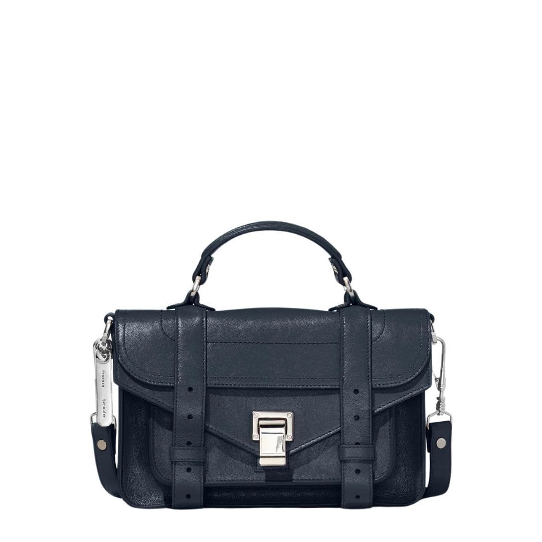 Inspired by the timeless aesthetics  the Proenza PS1 Tiny Bag Dark Navy. seamlessly marries functionality with effortless style. Positioned as the third smallest member within the esteemed PS1 family, this iteration epitomizes practical elegance. Crafted with meticulous attention to detail, every aspect of this accessory exudes sophistication.