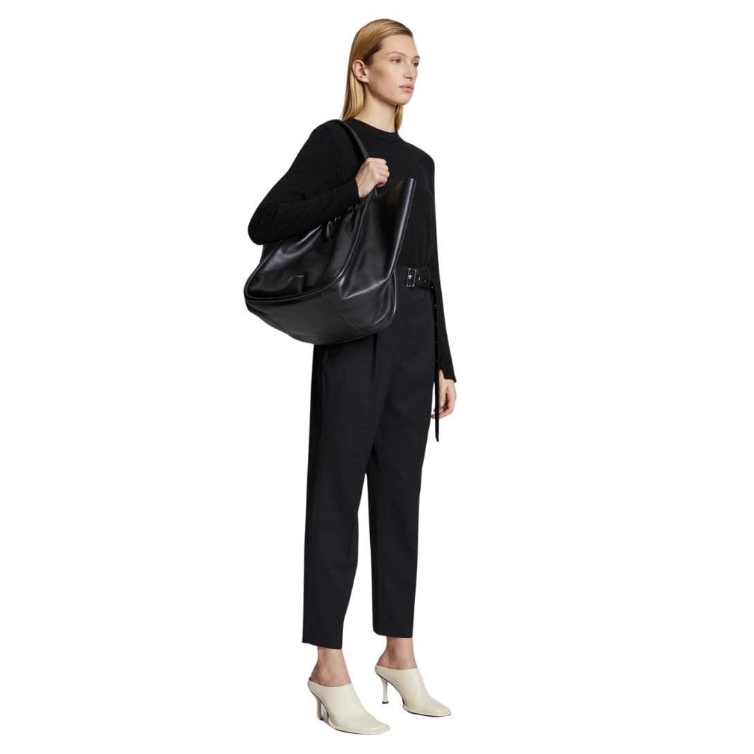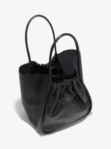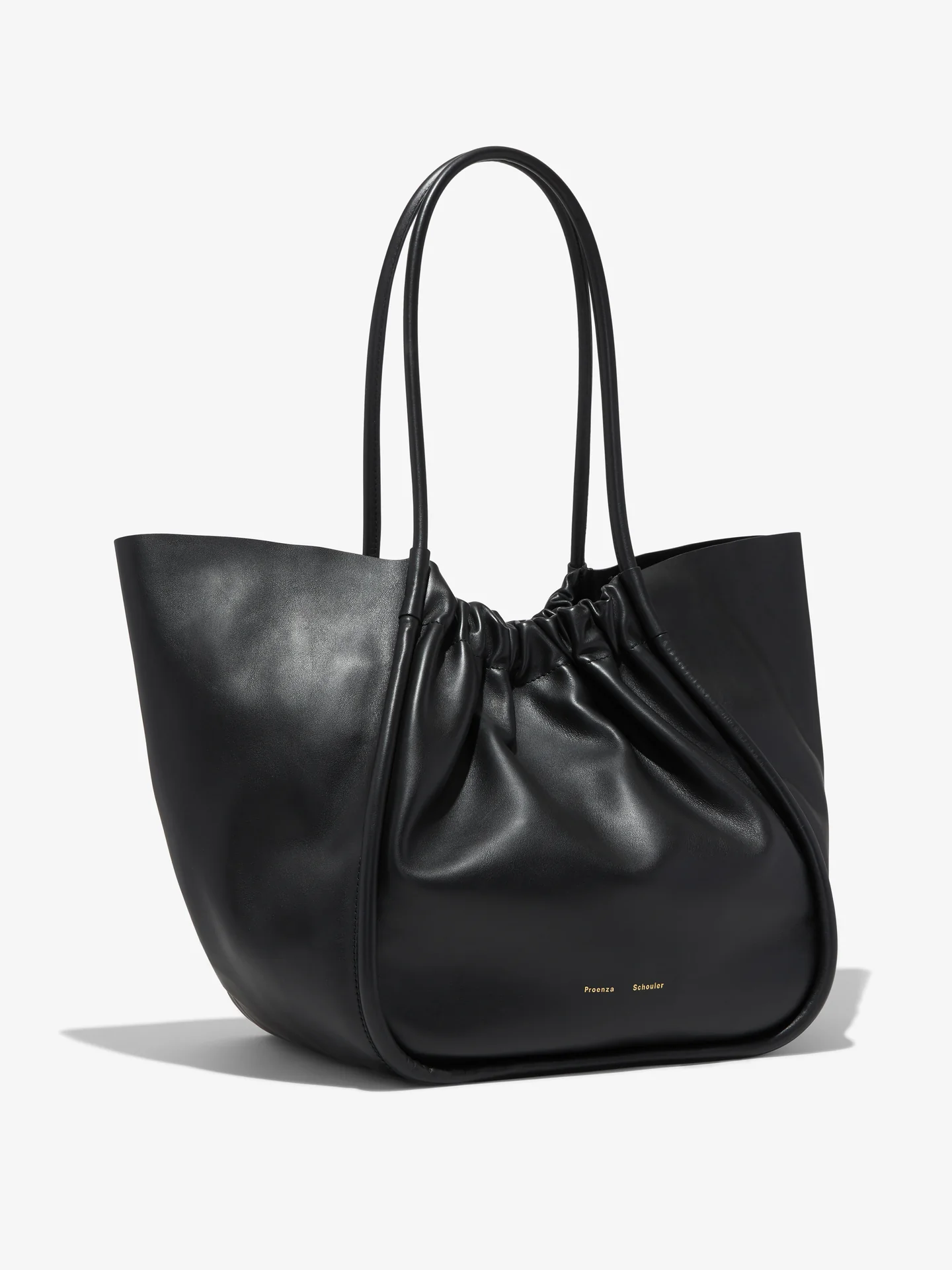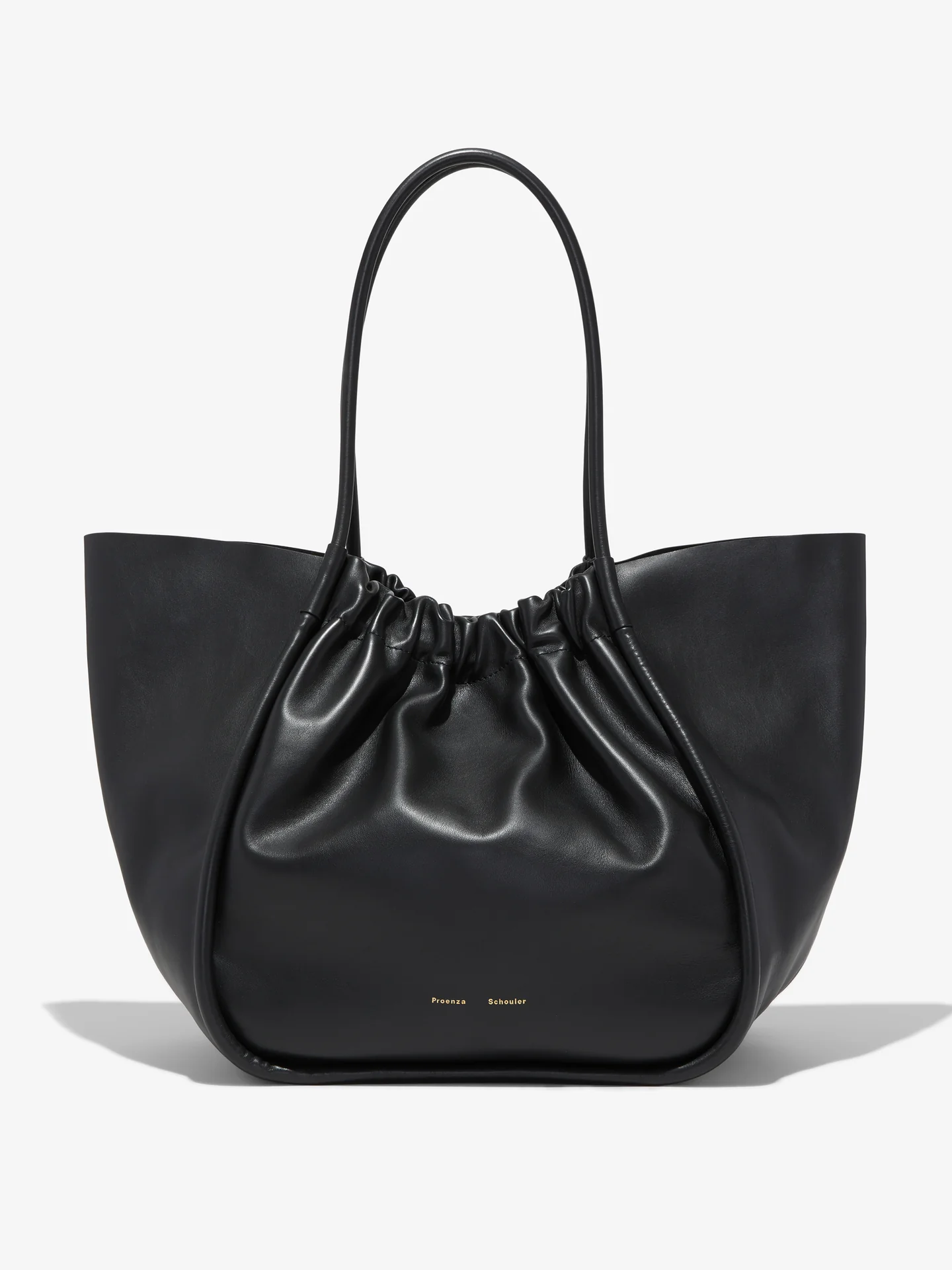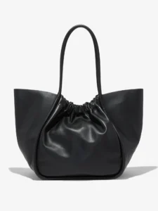 The Proenza XL Ruched Tote Black. epitomizes a fusion of structural sophistication and artistic elegance, meticulously crafted to captivate with its unstructured yet sculpturally refined silhouette. Every detail is meticulously designed to enhance both functionality and aesthetic appeal, making it a quintessential accessory for the modern cosmopolitan.