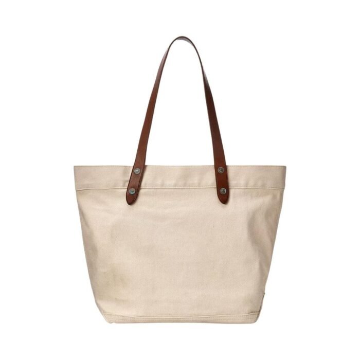 Designed with versatility in mind, the Leather-Trim Twill Tote features a spacious interior that offers ample room for all your essentials. Whether you’re heading to the office, running errands, or embarking on a weekend getaway, this tote effortlessly accommodates your belongings with ease. Thoughtful details such as interior pockets and compartments ensure efficient organization, while a secure closure provides peace of mind during your travels.