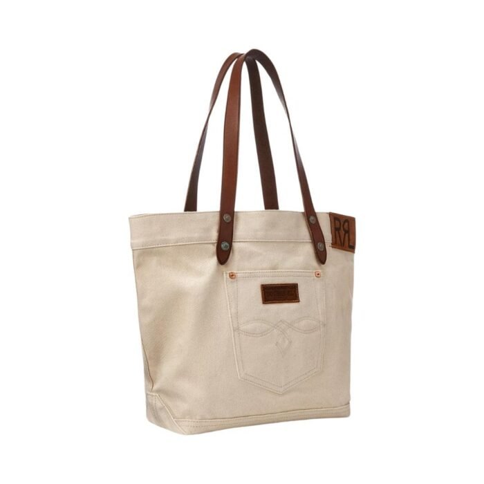 At first glance, the tote exudes an aura of understated luxury. Its exterior is crafted from high-quality twill fabric, renowned for its durability and sleek texture. The rich, earthy tones of the twill serve as a canvas for the exquisite leather trim that adorns the edges and handles of the bag. The contrast between the supple leather and the sturdy twill creates a visually striking effect, highlighting the impeccable craftsmanship synonymous with the Ralph Lauren brand.