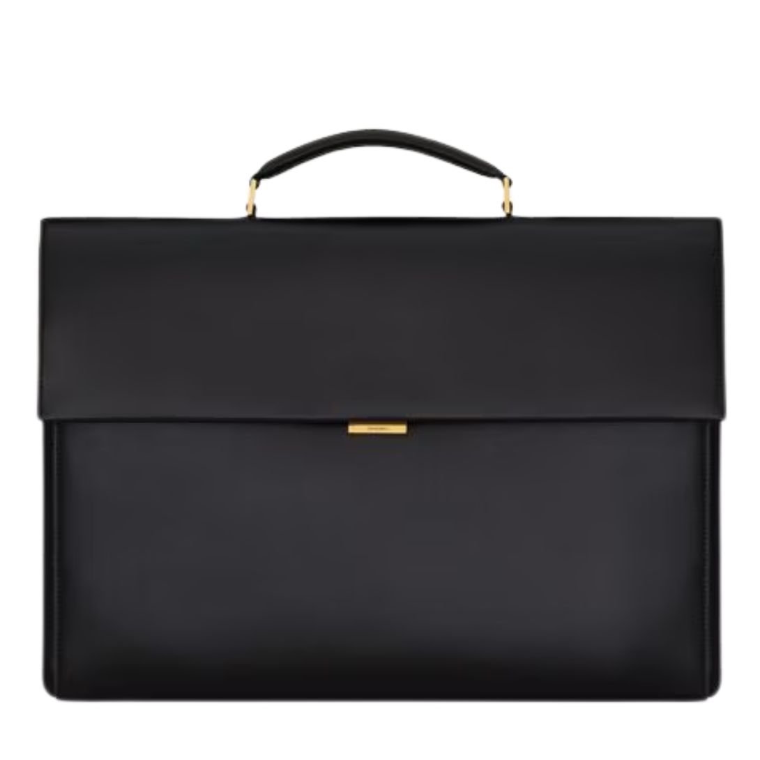 The Saint Laurent thin flap-top briefcase is the epitome of elegant functionality, perfect for professionals seeking a sleek and stylish accessory.